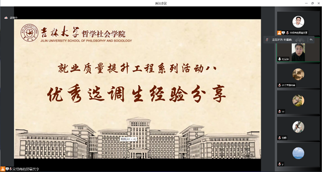 最后,刘畅老师做总结发言。刘老师说道,两位同学都曾于本科生阶段担任员工干部,热心助人、团结同学,有扎实的学业水平和良好的个人素质,员工时代的努力积累为他们的人生发展提供了坚实保障,希望同学们能够向他们学习,把握当下,充实自己的个人经历和能力,为以后的就业之路打好基础。同时,刘老师表示,很高兴地看到两位哲社学子在工作岗位上的成长,祝愿每一位同学事业顺利、学业精进!