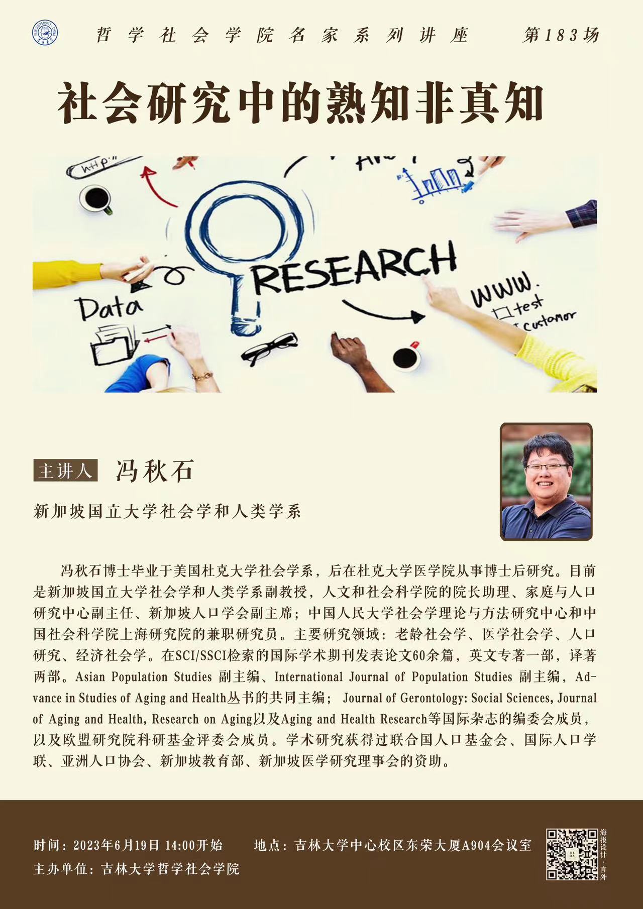 【bv伟德国际1946官网名家系列讲座第183场】冯秋石:社会研究中的熟知非真知