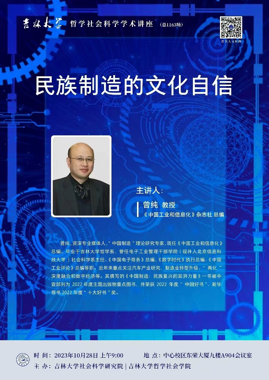 bv伟德国际1946哲学社会科学学术讲座(总1163场)曾纯:民族制造的文化自信