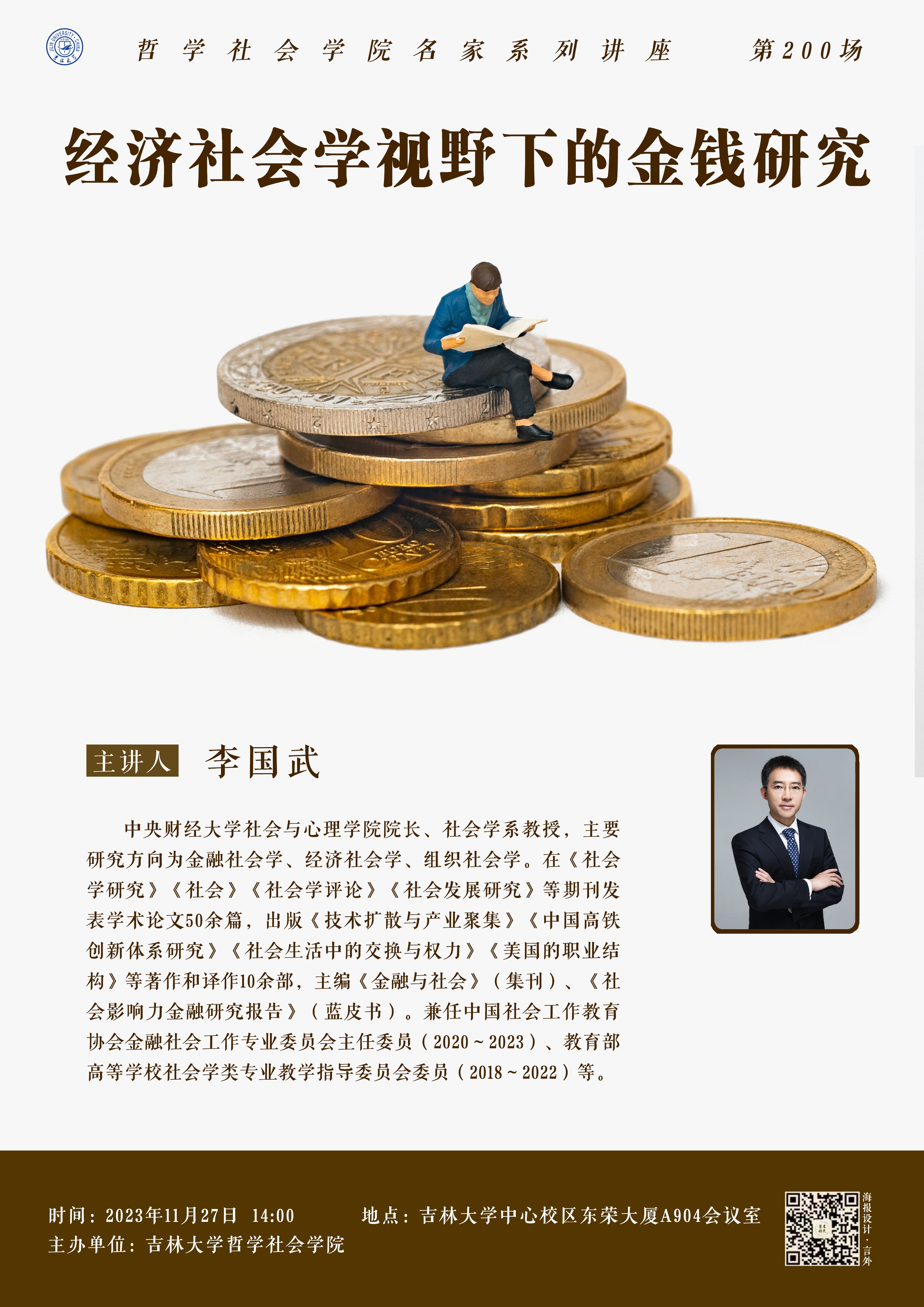 【bv伟德国际1946官网名家系列讲座第200场】李国武:经济社会学视野下的金钱研究