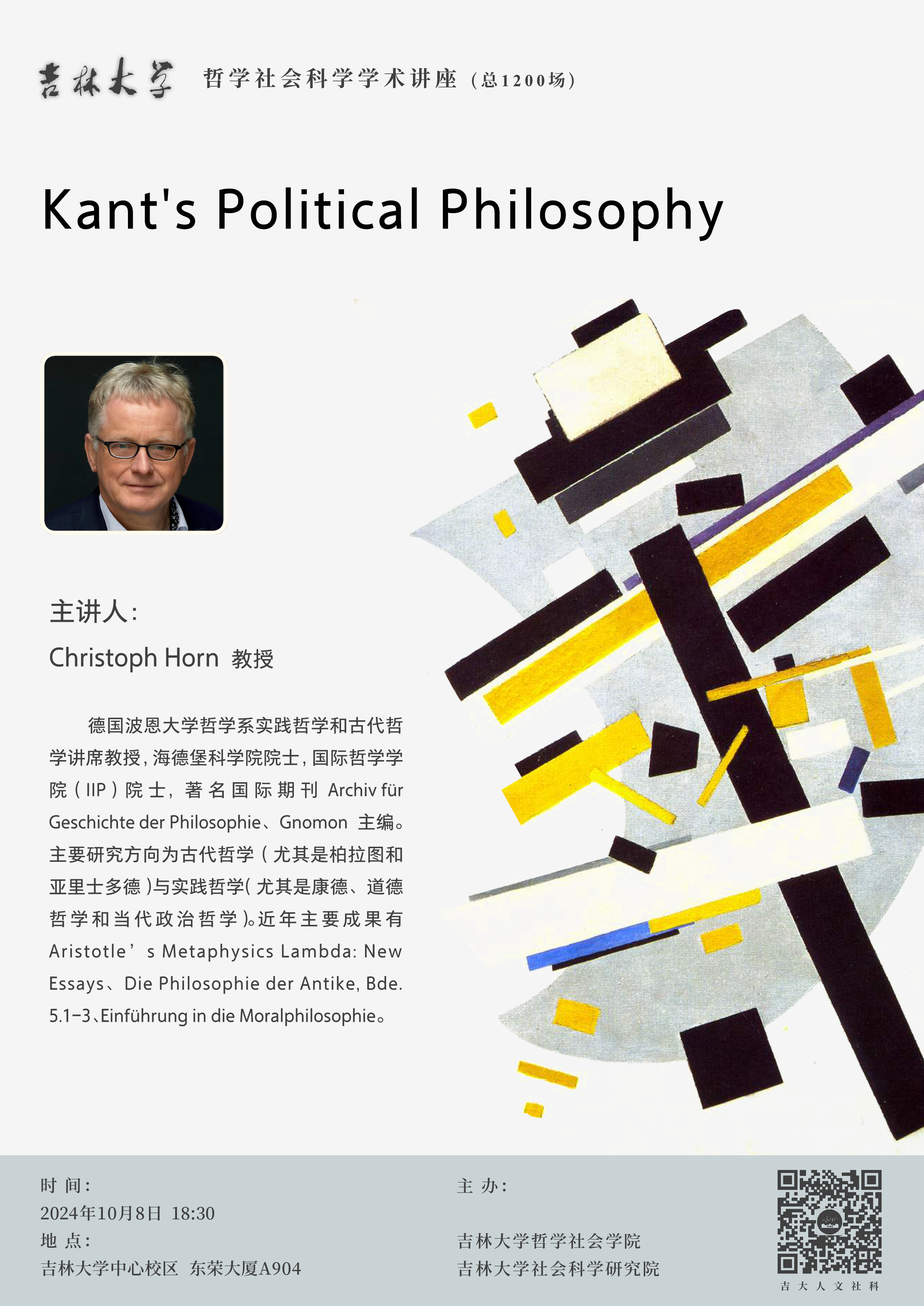 【bv伟德国际1946哲学社会科学学术讲座(总1200场)】Christoph Horn:Kant’s Political Philosophy