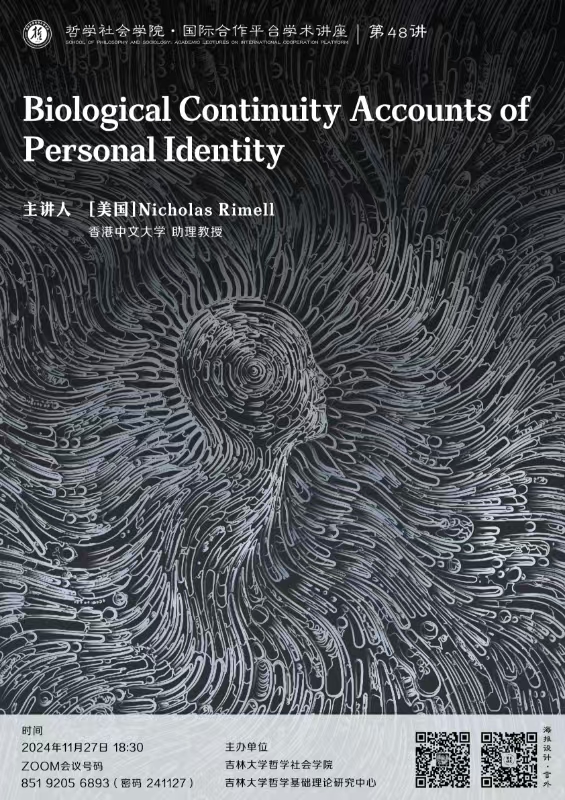 【bv伟德国际1946官网·国际合作平台学术讲座 第48讲】Nicholas Rimell: Biological Continuity Accounts of Personal Identity