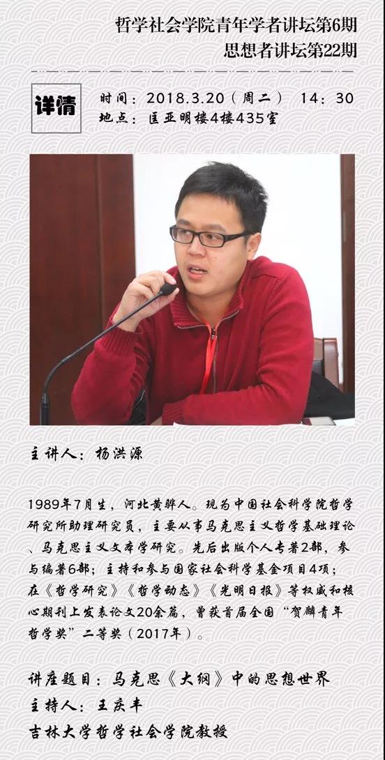 【bv伟德国际1946官网名家系列讲座第2场】bv伟德国际1946官网青年学者讲坛第六期 杨洪源:马克思《大纲》中的思想世界