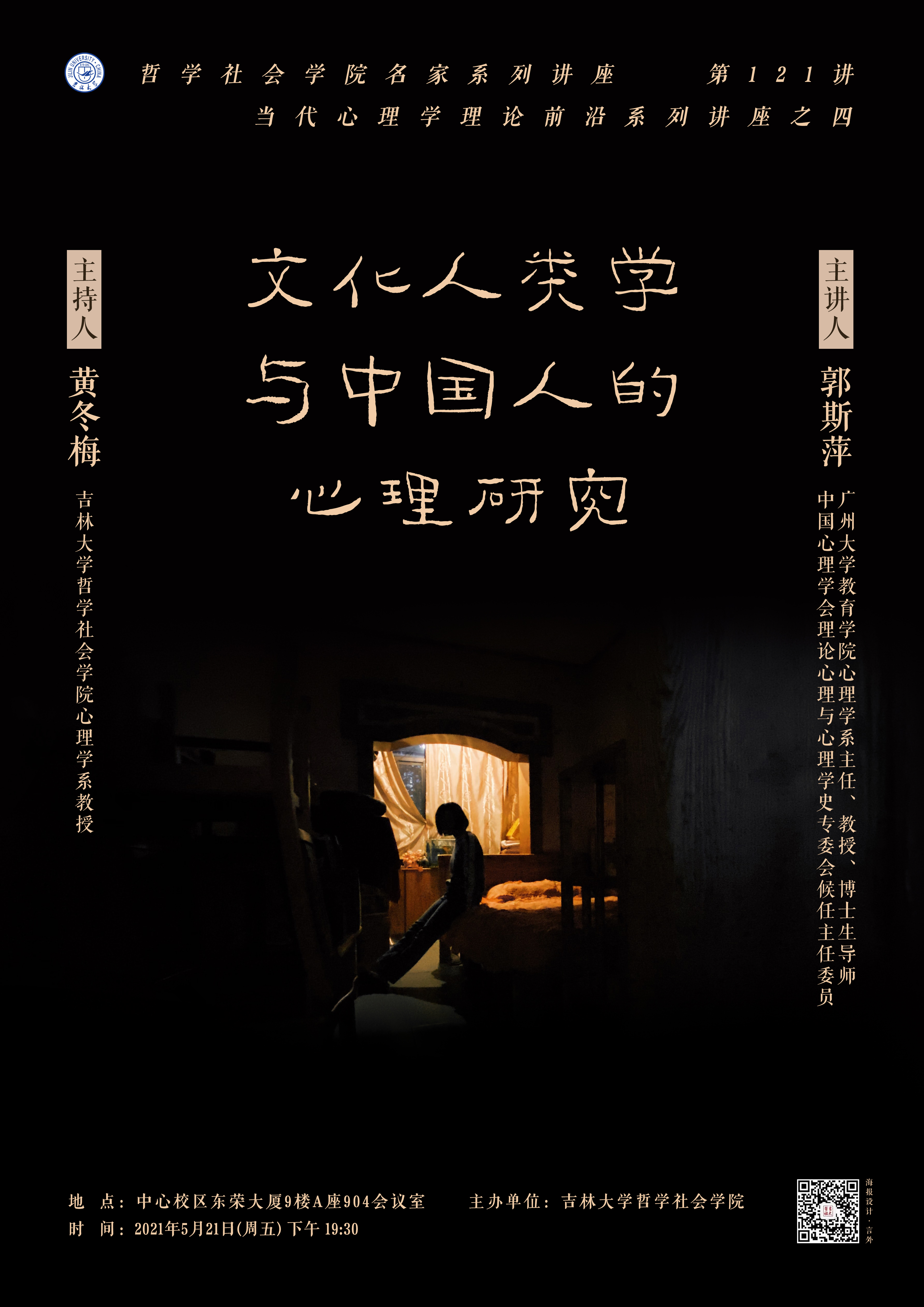 【bv伟德国际1946官网名家系列讲座第121场】【当代心理学理论前沿系列讲座之四】郭斯萍:文化人类学与中国人的心理研究