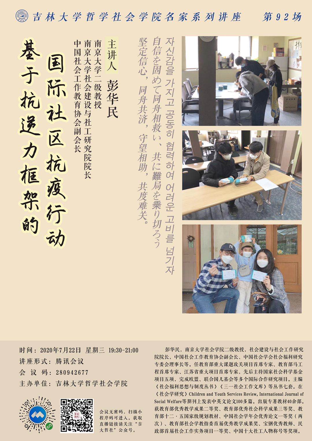 【bv伟德国际1946官网名家系列讲座第92场】彭华民:基于抗逆力框架的国际社区抗疫行动
