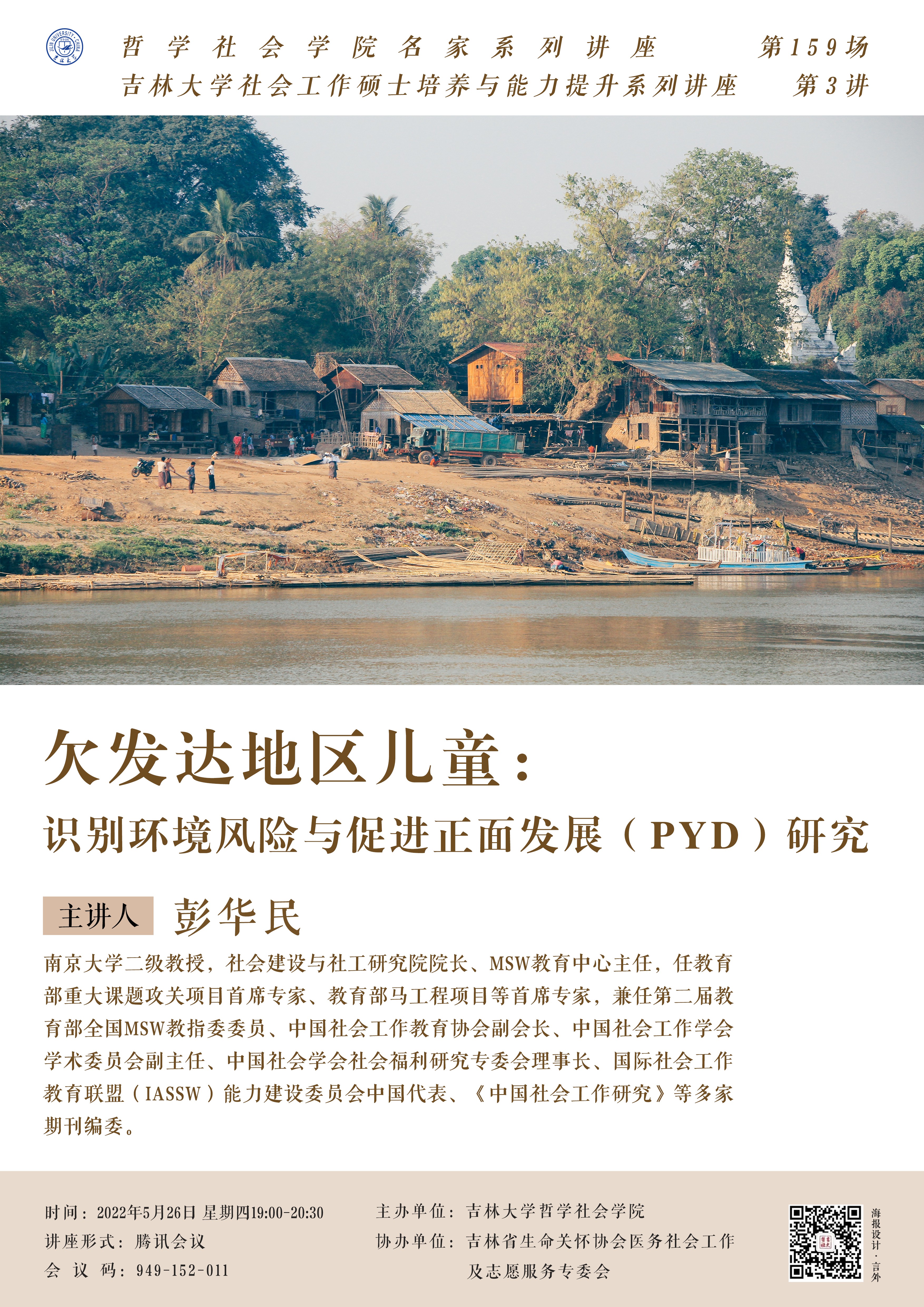 【bv伟德国际1946官网名家系列讲座第159场】【bv伟德国际1946社会工作硕士培养与能力提升系列讲座第3讲】彭华民:欠发达地区儿童:识别环境风险与促进正面发展(PYD)研究
