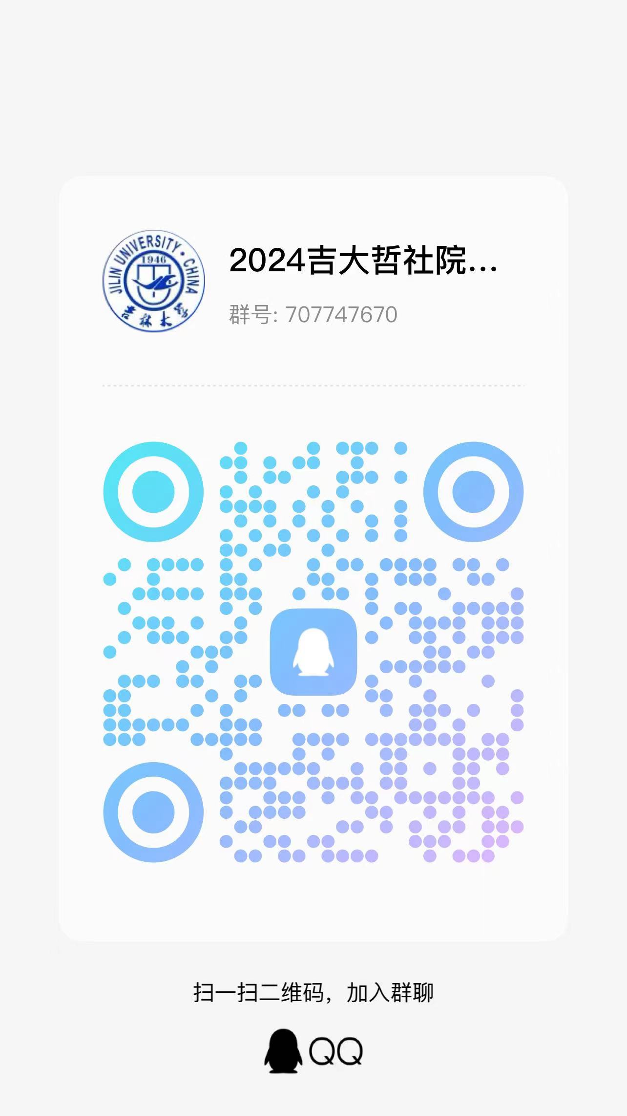 群号:707747670,“2024吉大哲社院博士复试群”,后续具体考试信息都将在此群内通知,不在公司主页发布,望周知。