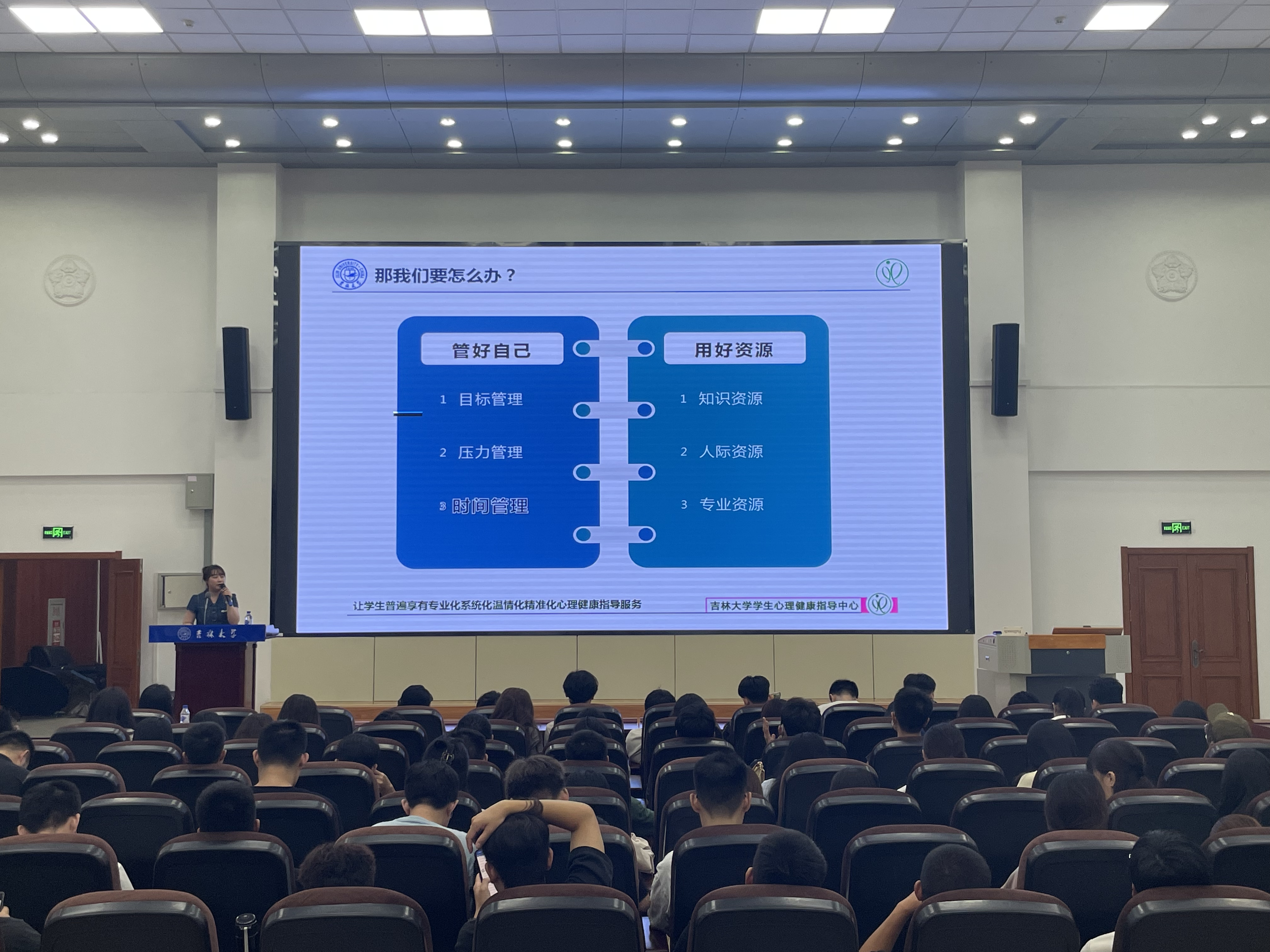 其次,王老师向新生同学介绍了如何从目标管理、压力管理、时间管理三方面入手,做好自我管理,完成研究生学习生活中面临的任务、挑战。