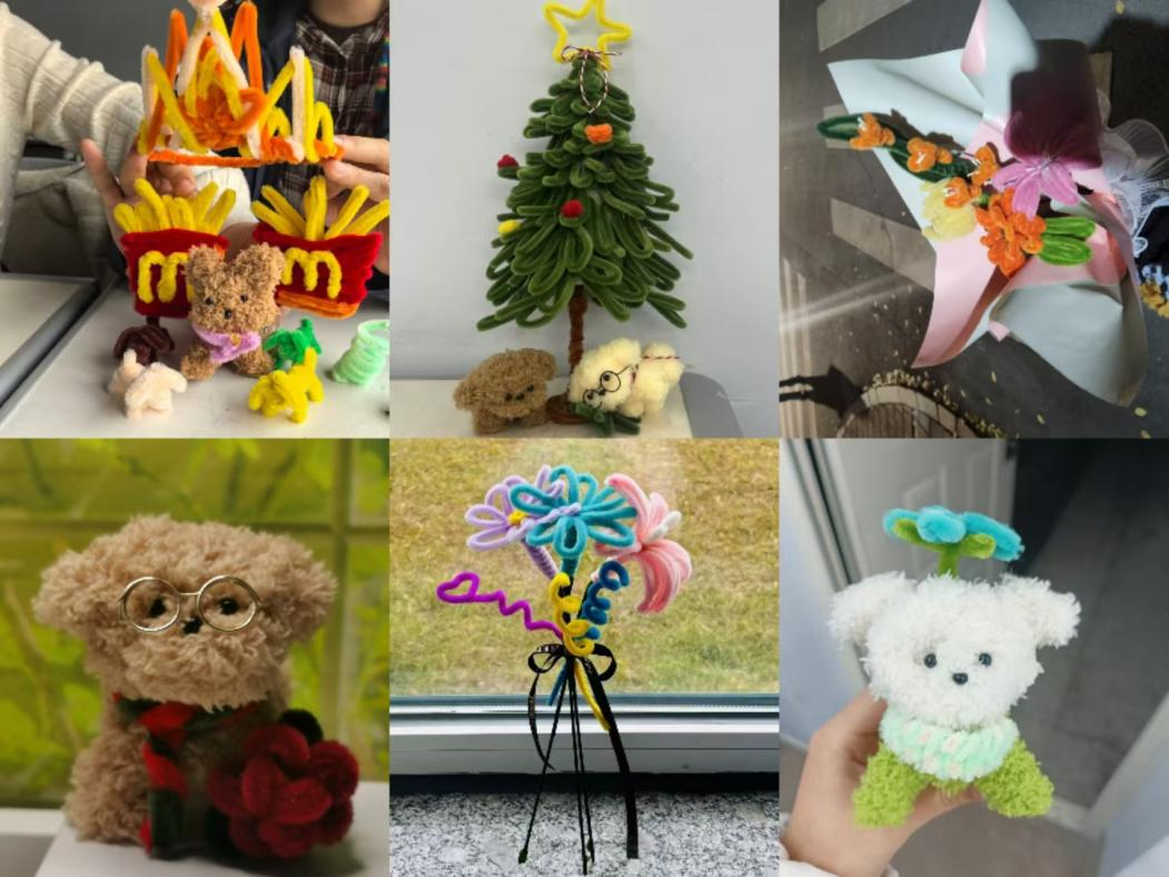 此次活动的成功举办,不仅为同学们提供了一个展示才华和释放压力的平台,更让他们在实践中体验到了艺术创作与心理疗愈的魅力。通过扭扭棒手工制作,同学们学会了如何通过艺术表达自我、理解他人,增强了情感连接和沟通能力。