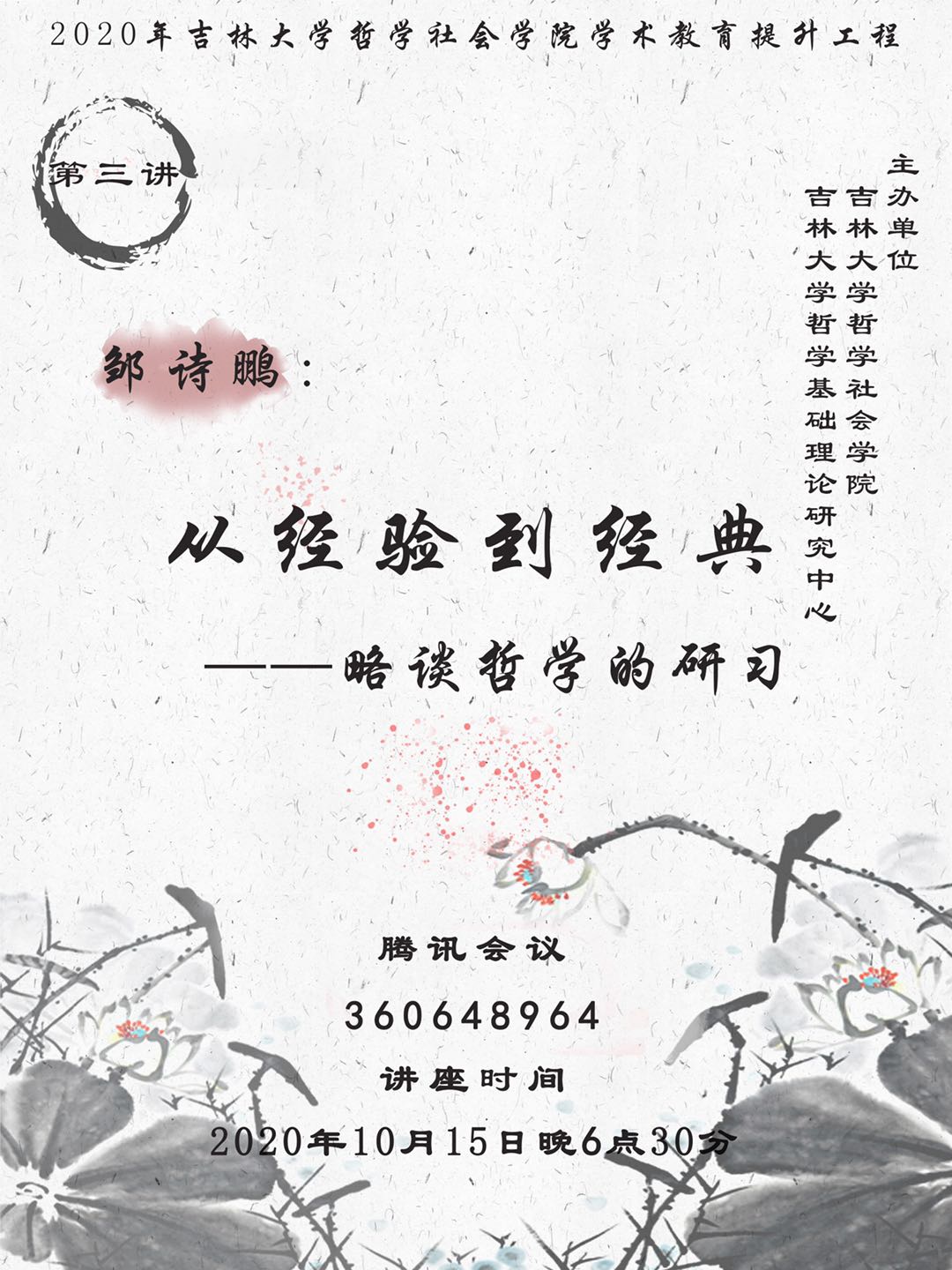 2020年bv伟德国际1946官网学术教育提升工程第三讲:从经验到经典——略谈哲学的研习 邹诗鹏