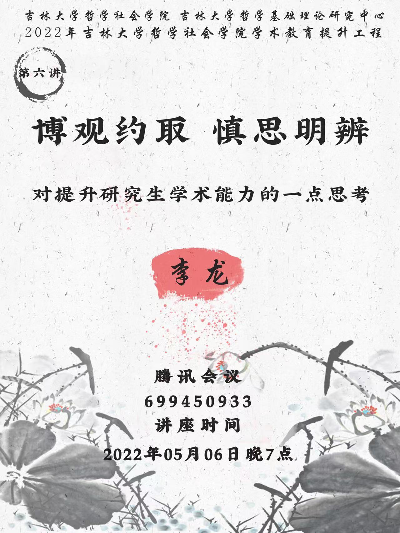 【bv伟德国际1946官网学术教育提升工程(第六讲)】李龙:博观约取,慎思明辨——对提升研究生学术能力的一点思考