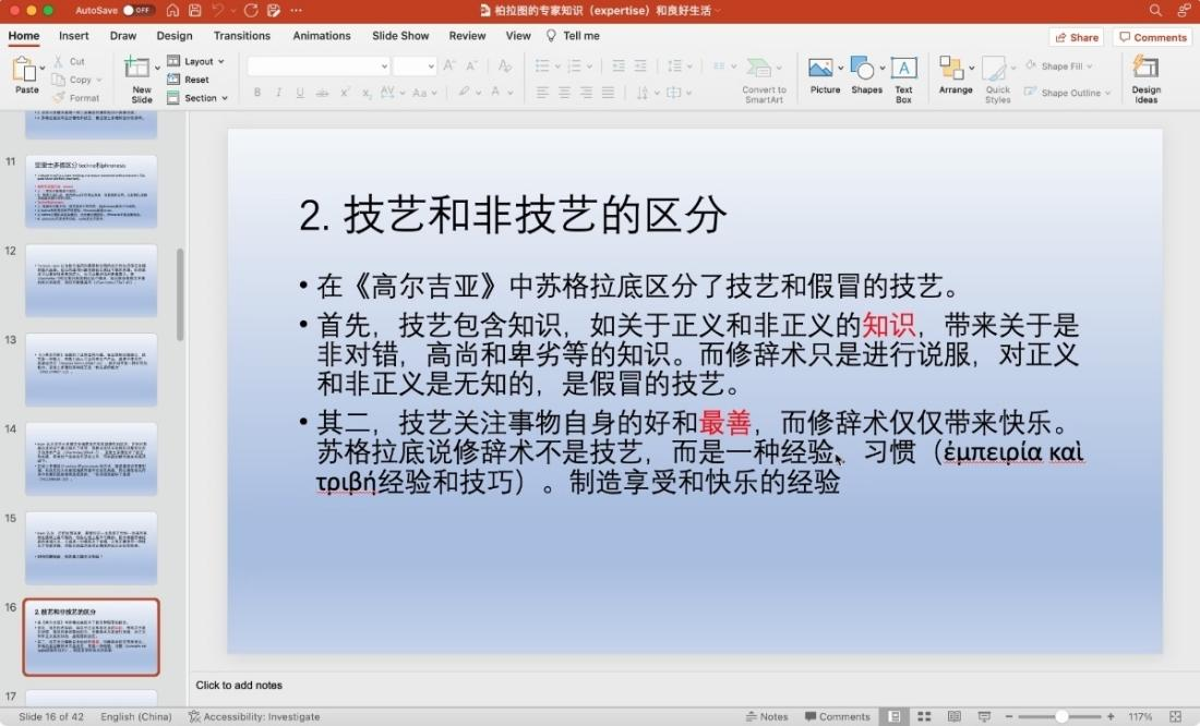 最后,朱清华教授得出结论,从根本上说,如果没有对人的良好整体生活的关怀,没有实践的善的目的,专家知识是不能作为真正的人类技艺的。并且,在柏拉图这里,技艺-专家知识作为一种实践能力和技能是自然地通达人的良好生活的,否则就是非技艺。