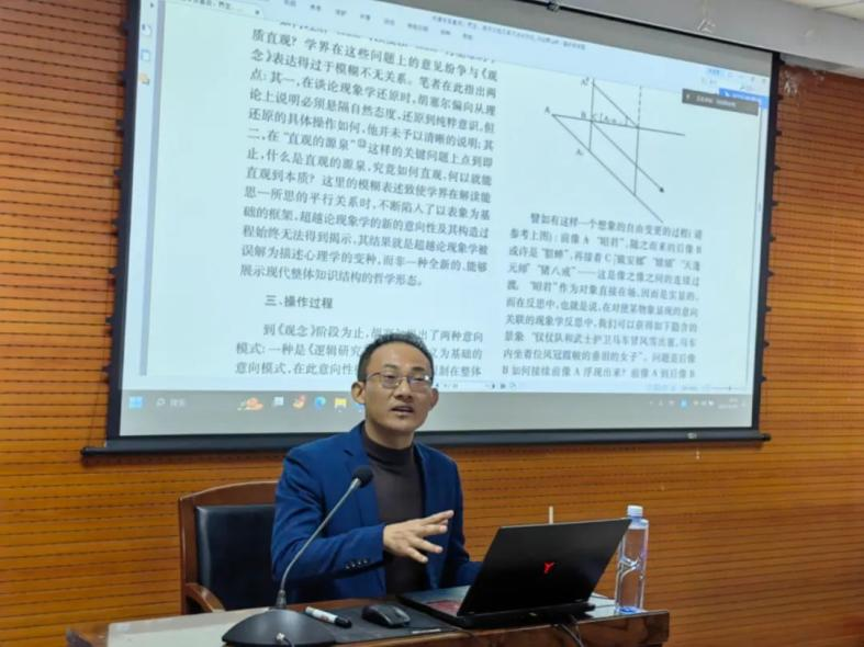 2023年10月26日晚上,bv伟德国际1946官网举办的“德法哲学青年学者系列讲座”第八讲在东荣大厦904举办。本期讲座由浙江大学哲学学经理聘副教授、研究员、博士生导师;浙江大学现象学与心性思想研究中心副主任;现象学专业委员会委员、德国哲学专业委员会理事;中国心理卫生协会理事马迎辉副教授主讲,讲座主题为何谓本质直观: 界定、操作过程及其方法论效应”。bv伟德国际1946官网高申春教授担任本次讲座的与谈嘉宾,bv伟德国际1946官网赵雄峰副教授主持了本次讲座。