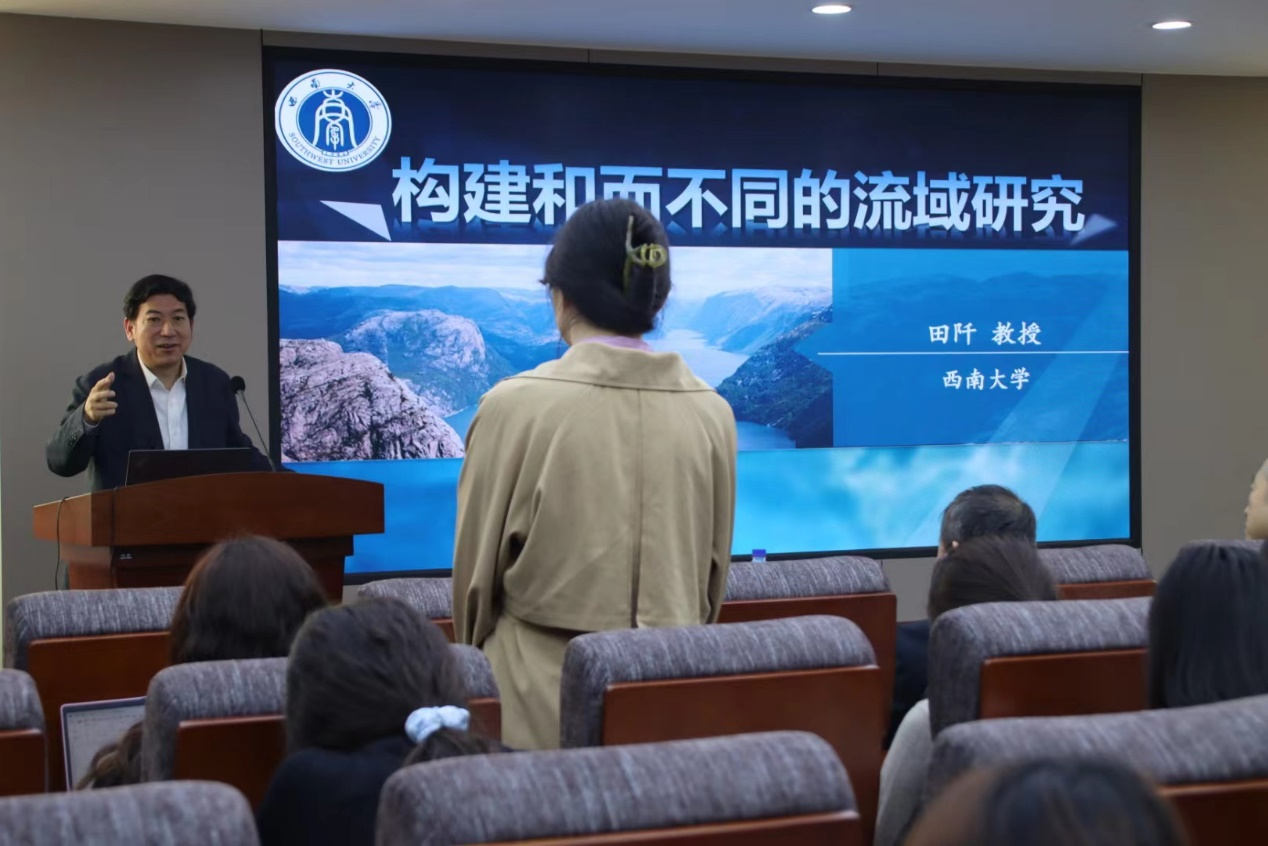 与谈人西南大学田阡教授以“构建和而不同的流域研究”为题探讨了中国人类学区域研究的新方向,即流域人类学,并指出,流域人类学研究在区域研究视野下,以河流为中心,以水为纽带,视“人—地—水”相互的作用为自然—社会综合体,将上中下游和左右岸的自然体和人类群体连接为一个不可分割的整体。田阡教授讲授了人类与流域如何形成紧密相连、休威与共的生存共同体,探讨了人类在集聚到流域范围之后,怎样进行主客观的改造,实现与人造自然的全面融合。最后,田阡教授倡导在人类学的中国话语下构建流域人类学理论体系。