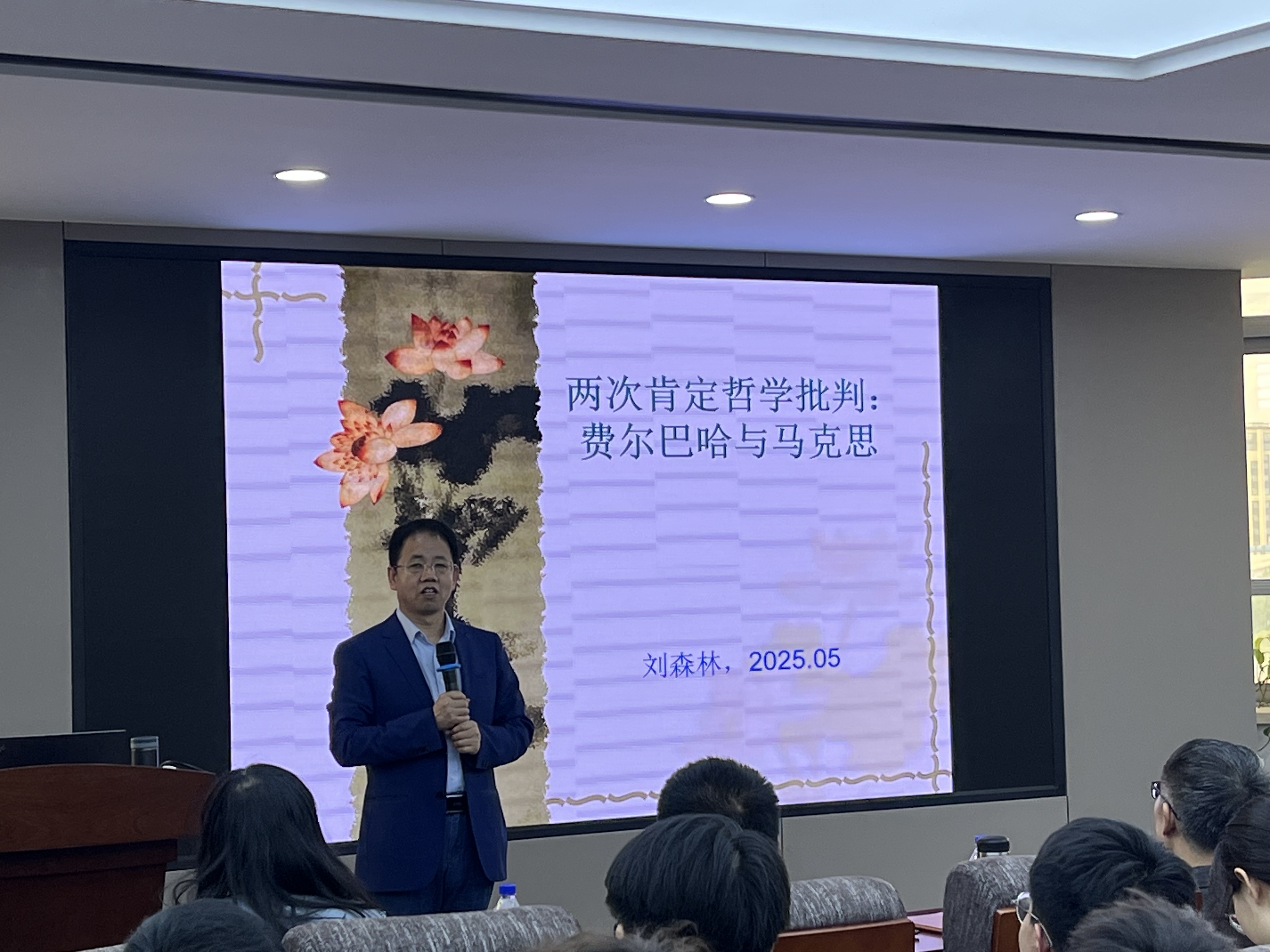 刘森林教授以“费尔巴哈的唯物主义从何而来”为切入点展开了本次讲座。在刘老师看来,现有的关于费尔巴哈思想渊源的研究都回避或忽视了费尔巴哈与谢林的关系,费尔巴哈的唯物主义绝不是开天辟地、惊天一呼、横空出世之事,在阅读了谢林爱尔兰根讲座后撰写的《肯定哲学批判》昭示了费尔巴哈思想转变的缘由。刘老师从三个方面论证了费尔巴哈如何在批判谢林肯定哲学的基础上,提出了自己的“新”哲学——“新的唯一的肯定哲学”。其一,费尔巴哈批判谢林调和宗教和哲学,而不是以哲学揭示宗教的秘密。其二,在费尔巴哈看来,谢林的肯定哲学没有把感性原则贯彻到底,而他本人理解的肯定哲学应该是基于感性、经验、生成、身体、自然等原则重构哲学,而不是把它们限制在传统理性的框架之内。其三,费尔巴哈批判谢林的肯定哲学面临容易走向主观任意的危险。刘老师揭示了马克思在研读过《肯定哲学批判》后,发现了提出肯定哲学的谢林才是批判黑格尔哲学的第一人,费尔巴哈是在谢林批判的基础上进一步批判黑格尔的。抛开了谢林先验哲学,只保留自然哲学的费尔巴哈丧失了德国古典哲学最重要的成就——主体性立场。对于马克思来说,只有把主体性立场和实证性立场内在结合起来,从而进一步把理论哲学与实践哲学统一起来,才能形成新的实践唯物主义。最后,刘老师指出费尔巴哈对肯定哲学的批判对于马克思只是起了一种“中介性”的作用,促使马克思进一步知晓晚期谢林对黑格尔的批判,并把这种批判吸收和延展到自己终生对黑格尔的批判超越之中。马克思没有完全接受费尔巴哈的谢林批判,没有接受撇开否定哲学径直按照肯定哲学之路激进推进的路子,而是在肯定哲学强调的感性、经验、情感、欲望等原则与否定哲学强调的普遍本质、必然规律之间的结合中探寻新的融合之道。