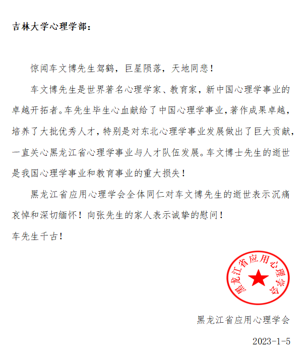 黑龙江省应用心理学会唁电