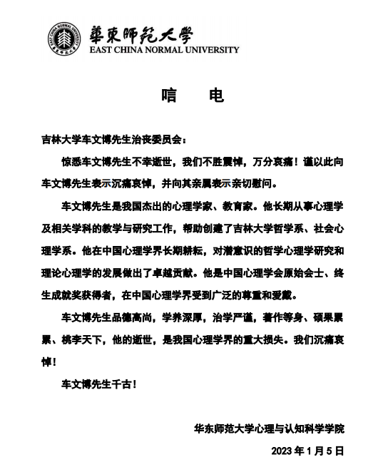 华东师范大学心理与认知科学公司唁电